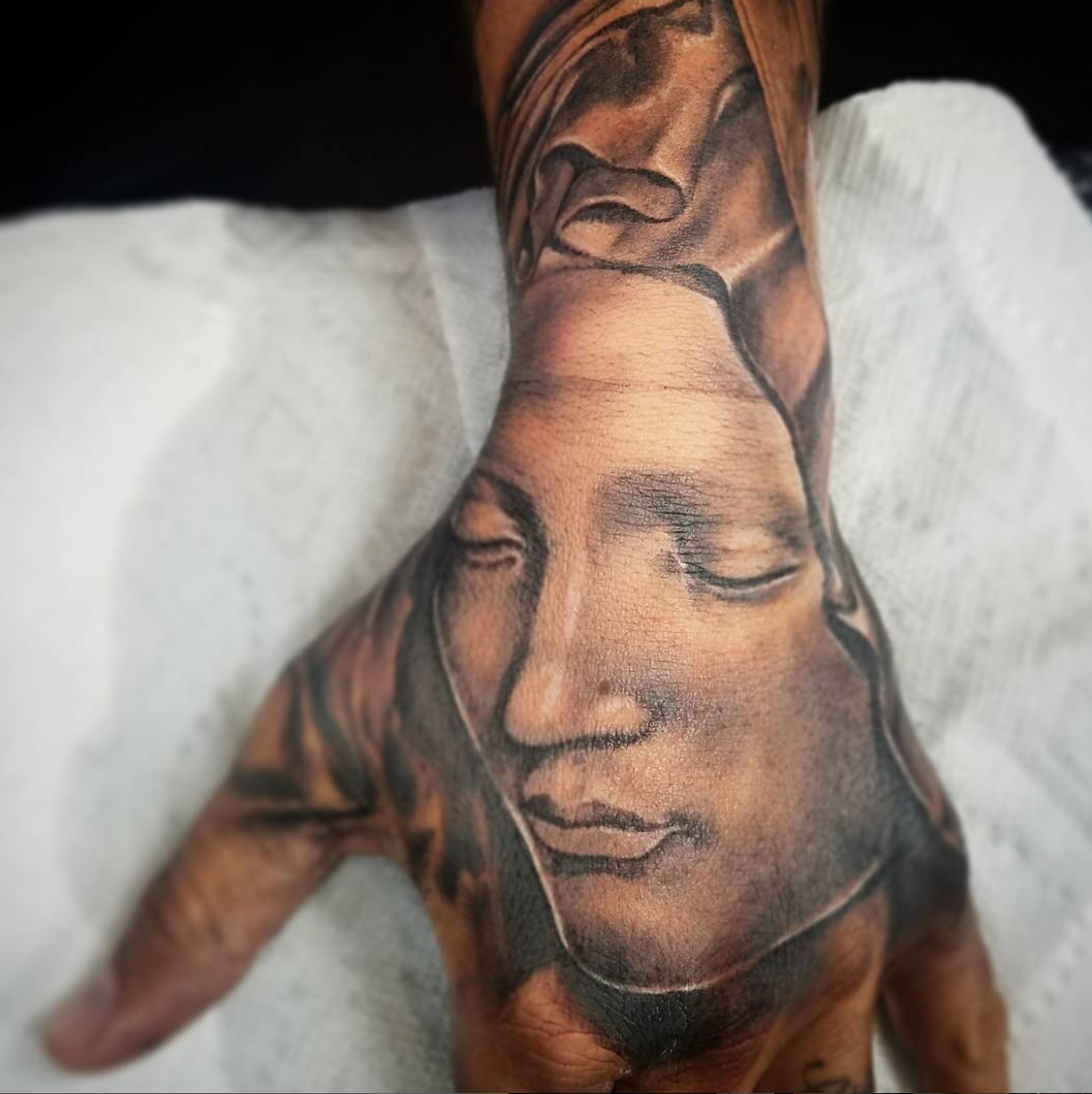 E.S. specialized in numerous tattoo styles such as; black and grey, portraits, traditional tattoo styles, and lettering.