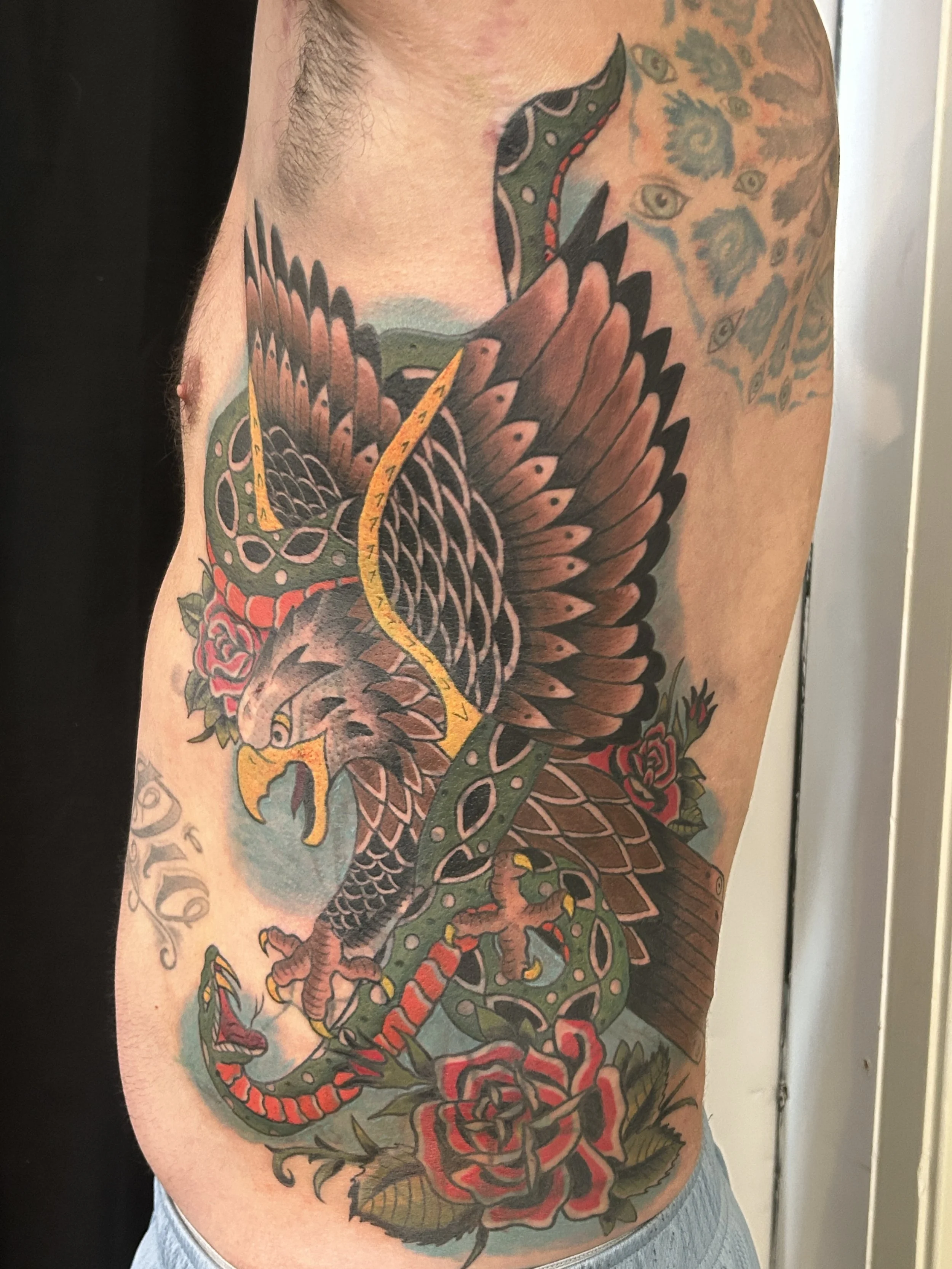 My style is constantly developing and differs per tattoo. Although, I really enjoy full color designs and traditional styles. I love mixing techniques of black and grey, stipple, and smooth shading.